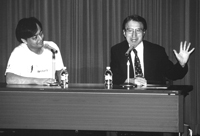「映像に対する『音/サウンド』には二つある。一つはフレーム内の音、セリフなどその場面で音源の見える音、二つ目はフレーム外の音(オフの音)、音は聞こえるがその音源が場面に見えない音で、映像に付けられた音楽・ナレーション・効果音がそれである。その二つ目を考えてデザインするのが録音技師の仕事である。ただ音を録音するだけでは録音技師とは言えない。最近は、映画をテレビで放送したりDVDで売ったりしているが、映画用にミックスされた音は小さな家庭用スピーカーで聞いても劇場のように迫力が出ない。レンジと言って音の強弱の幅が家庭用のスピーカーでは取れない。ボリュームを抑えて出すので小さな音は聞こえなくなる。映画はやはり劇場で、しかも真ん中で見て頂きたい。」