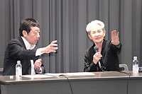 上月さんは昨年、佐々部清監督の『八重子のハミング』にご出演。当会の『子どもシネマスクール』という次世代に映画の伝統を伝える活動にもご参加頂いている。「世代的に黄金時代の日本映画を担っていた方々に、出て頂くと今の『映画が絞まる』」と、寺脇さんから更なる活躍を求められた上月さんは「今も毎朝7千歩を歩いて鍛えている」と応じられた。準備万端な上月さんに「では、私が仕事をとってきますね」という寺脇さんの力強い宣言も飛び出し、高千穂さんの尽きない思い出と未来に繋がる日本映画の力を味わいながら、和やかに上映会は閉幕した。 |